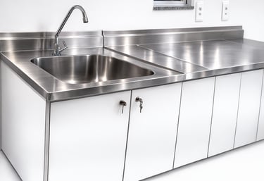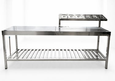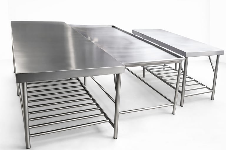 Bancadas sob medida para cozinhas, hamburguerias e ambientes industriais.
